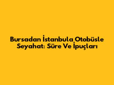 Bursa'dan İstanbul'a Otobüsle Seyahat: Süre Ve İpuçları