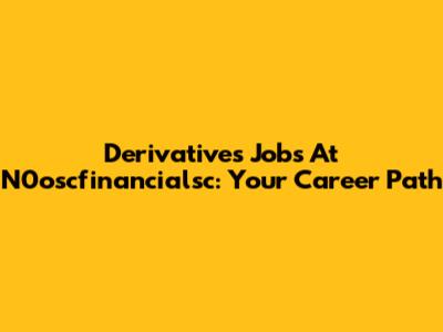 Derivatives Jobs At N0oscfinancialsc: Your Career Path