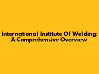 International Institute Of Welding: A Comprehensive Overview