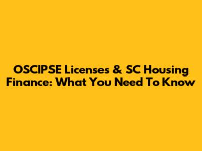 OSCIPSE Licenses & SC Housing Finance: What You Need To Know