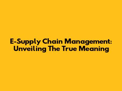 E-Supply Chain Management: Unveiling The True Meaning