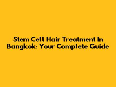 Stem Cell Hair Treatment In Bangkok: Your Complete Guide