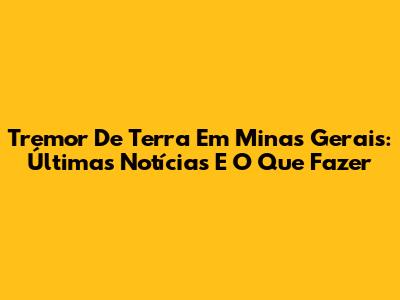 Tremor De Terra Em Minas Gerais: Últimas Notícias E O Que Fazer