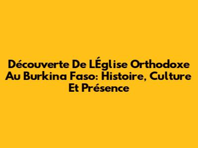 Découverte De L'Église Orthodoxe Au Burkina Faso: Histoire, Culture Et Présence
