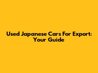 Used Japanese Cars For Export: Your Guide