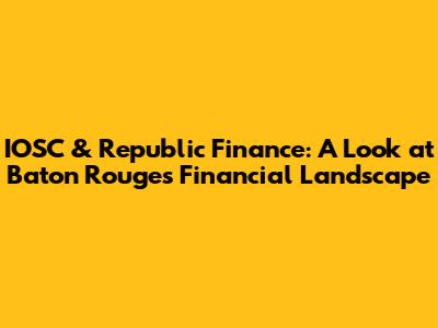 Hey there, financial enthusiasts! Let's dive deep into the world of finance in Baton Rouge, Louisiana, and specifically shine a light on the IOSC (International Organization of Securities Commissions) and the role of Republic Finance. Navigating the financial landscape can sometimes feel like trying to find your way through a maze, but don't worry, we're here to break it down. We'll explore how these entities impact the local economy, provide valuable services, and shape the financial well-being of the people of Baton Rouge. It is very important to get this right, so let's get into it, shall we?