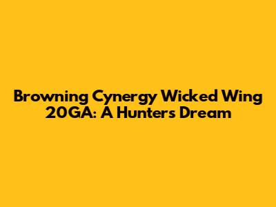 Browning Cynergy Wicked Wing 20GA: A Hunter's Dream