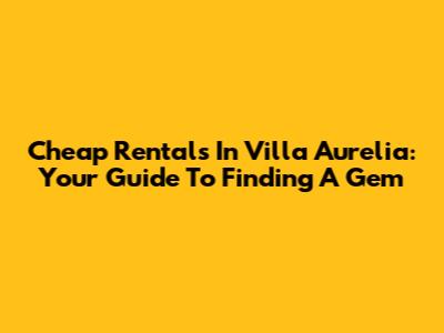 Cheap Rentals In Villa Aurelia: Your Guide To Finding A Gem