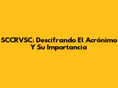 SCCRVSC: Descifrando El Acrónimo Y Su Importancia