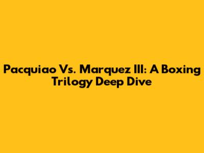 Pacquiao Vs. Marquez III: A Boxing Trilogy Deep Dive