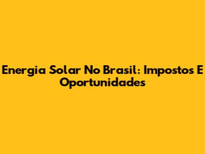 Energia Solar No Brasil: Impostos E Oportunidades