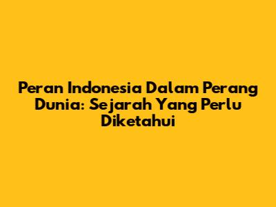 Peran Indonesia Dalam Perang Dunia: Sejarah Yang Perlu Diketahui